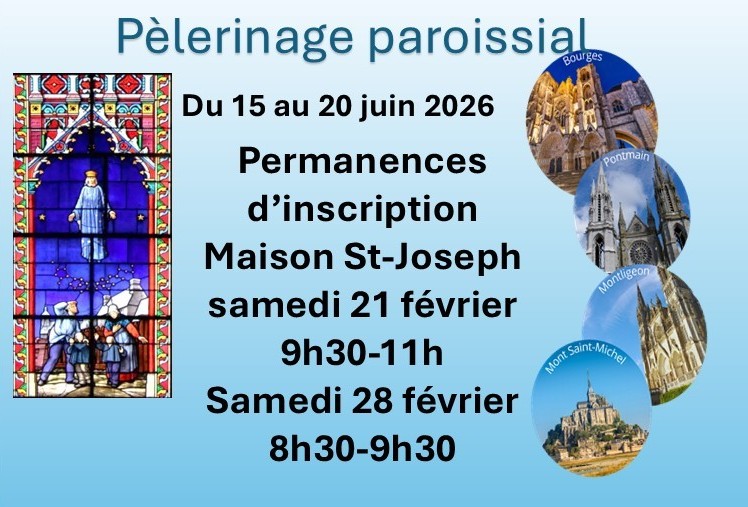 Nous vous l’avions annoncé dans les Échos de janvier : la paroisse organise un pèlerinage, du 15 au 20 juin, avec transport en car et hébergement au Sanctuaire de Pontmain (Mayenne), lieu d’apparition de la Vierge Marie à des enfants en 1871.