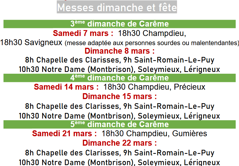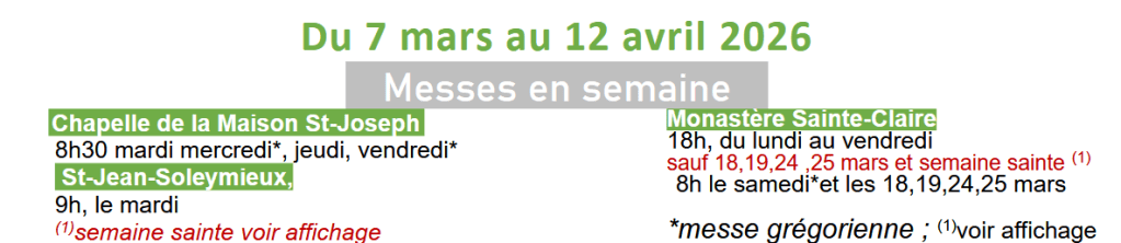 Retrouvez tous les horaires des célébrations sur : www.messes.info