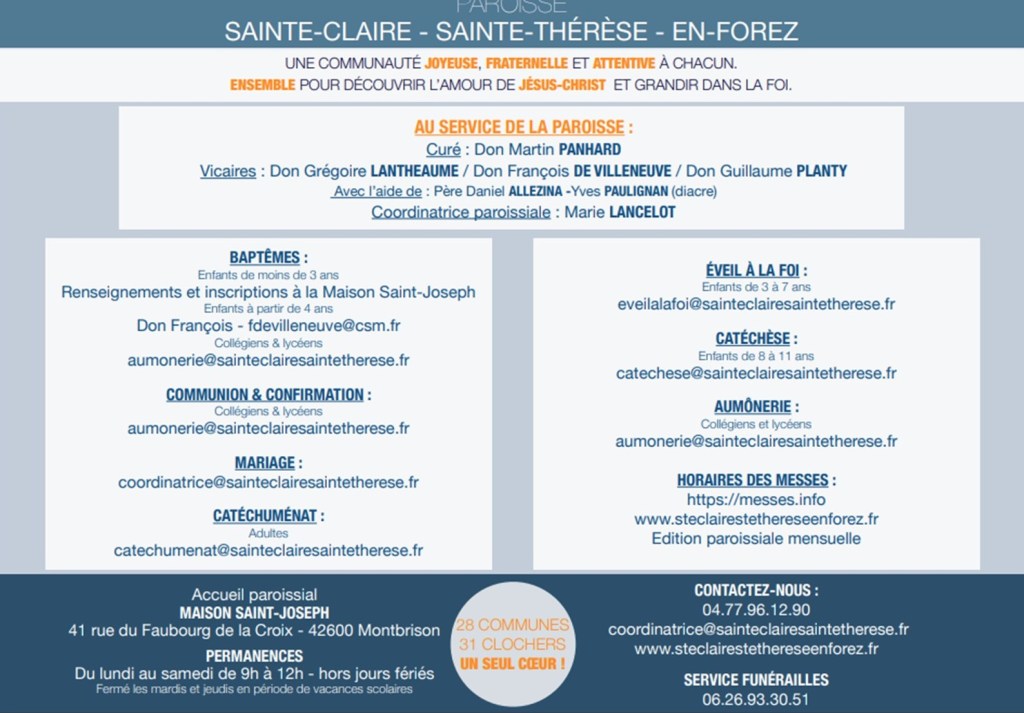 Ce mail préformé est adressé à la paroisse et à l’équipe communication qui transmettent si-nécessaire aux personnes concernées. Très bientôt, il sera possible de télécharger ci-dessous, un nouveau flyer ayant tous les contacts utiles. Ce flyer sera aussi à disposition dans les églises.